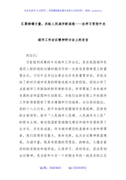 / 汇聚磅礴力量,共绘人民城市新画卷——在学习贯彻中央城市工作会议精神研讨会上的发言