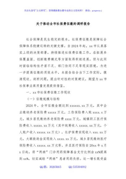 / 关于推动全市社保费征缴的调研报告