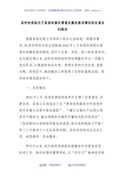 / 县科协党组关于县委巡察反馈意见整改落实情况的自查自纠报告