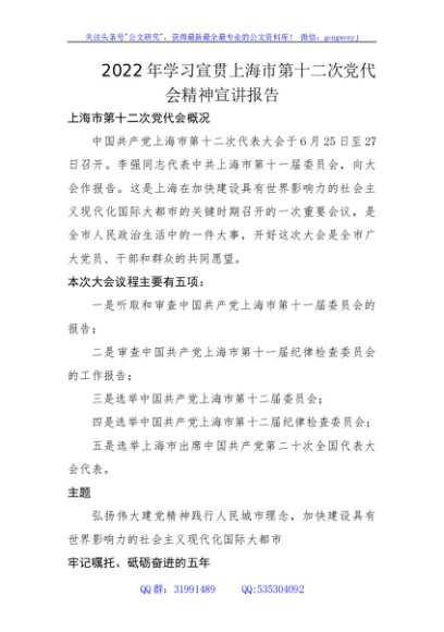 / 2022年上海市第十二次党代会精神宣讲报告