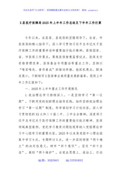 / X县医疗保障局2025年上半年工作总结及下半年工作打算