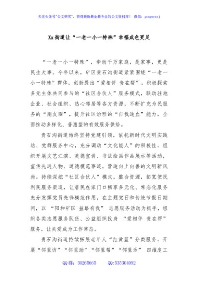 / Xx街道让“一老一小一特殊”幸福成色更足