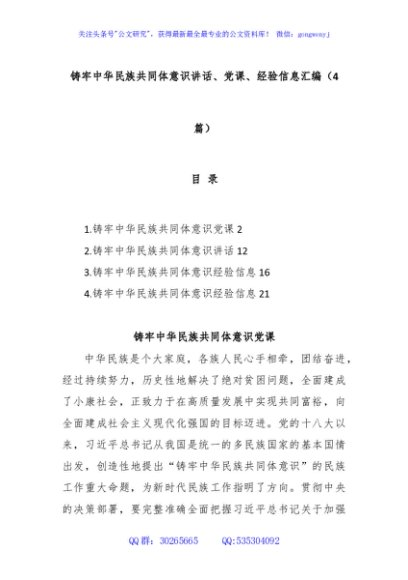 / (4篇)铸牢中华民族共同体意识讲话、党课、经验信息汇编
