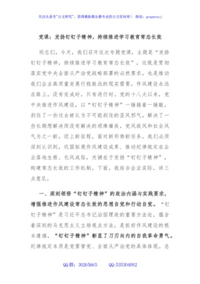 / 党课:发扬钉钉子精神,持续推进学习教育常态长效
