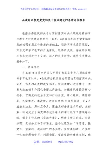 / 县政府办机关党支部关于作风建设的总结评估报告