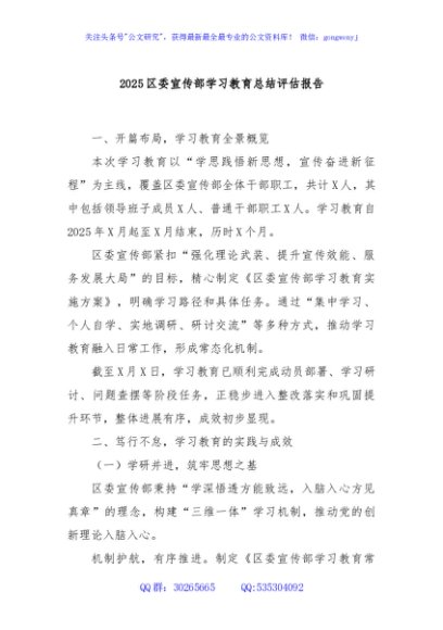 / 2025区委宣传部学习教育总结评估报告