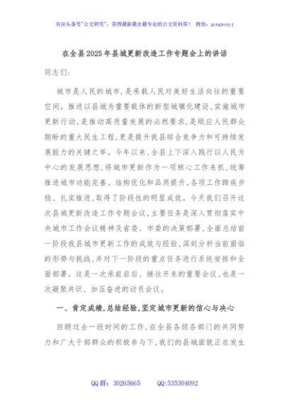 / 在全县2025年县城更新改造工作专题会上的讲话