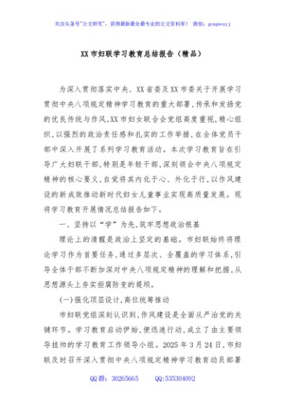 / XX市妇联学习教育总结报告(精品)