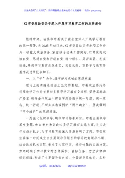 / XX市委政法委关于深入开展学习教育工作的总结报告