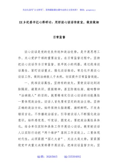/ XX乡纪委书记心得研讨:用好谈心谈话传家宝,做实做细日常监督
