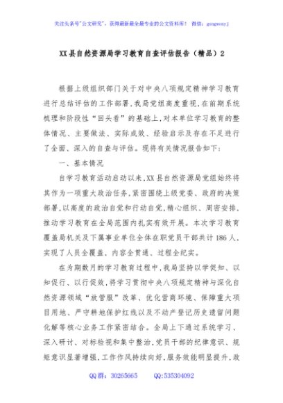 / XX县自然资源局学习教育自查评估报告(精品)2
