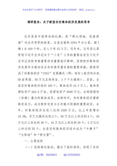 / 调研报告:关于新型农村集体经济发展的思考