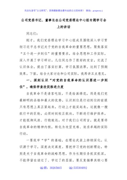 / 公司党委书记、董事长在公司党委理论中心组专题学习会上的讲话