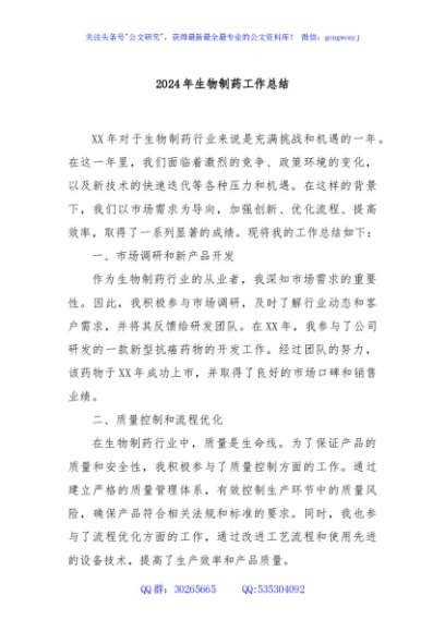 / 2024年生物制药工作总结