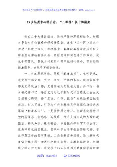 / XX乡纪委书心得研讨:“三举措”促干部勤廉