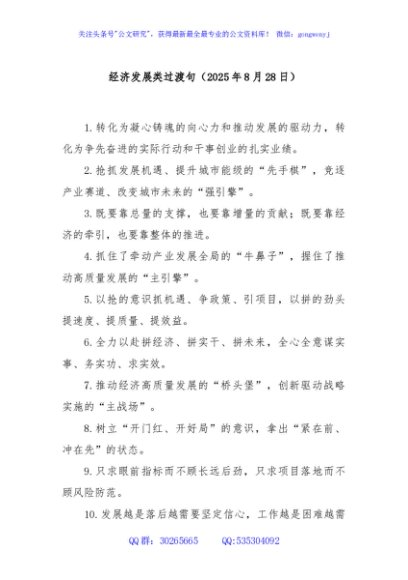 / 经济发展类过渡句(2025年8月28日)