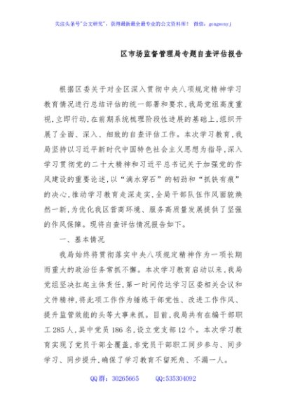 / 区市场监督管理局专题自查评估报告