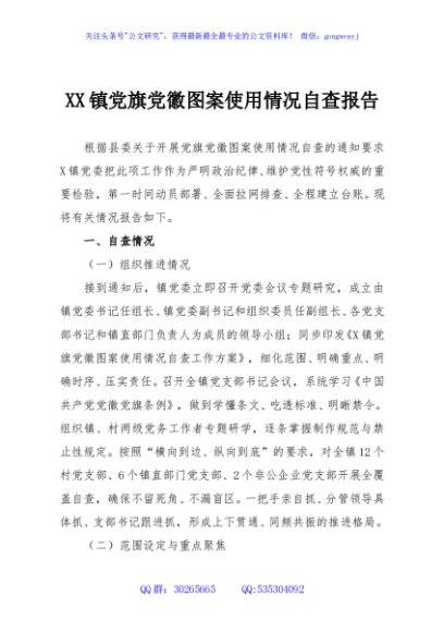 / XX镇党旗党徽图案使用情况自查报告