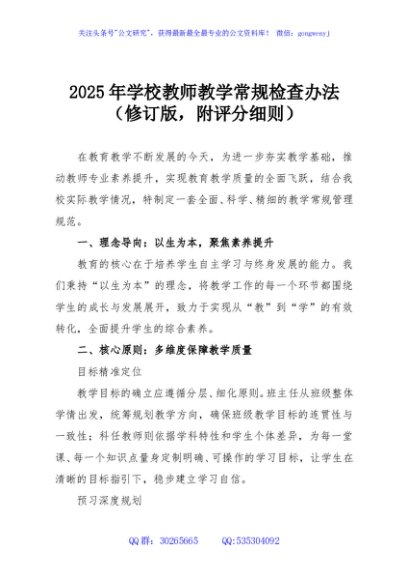 / 2025年学校教师教学常规检查办法(修订版,附评分细则)