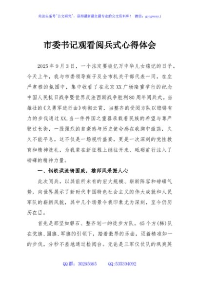 / 市委书记观看阅兵式心得体会