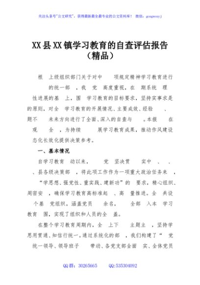 / XX县XX镇学习教育的自查评估报告(精品)
