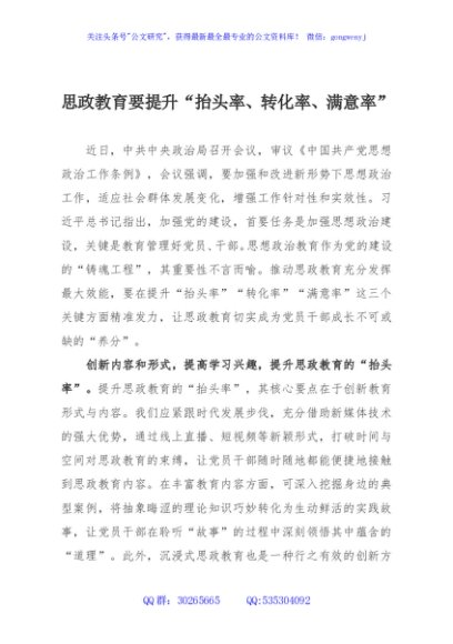 / 思政教育要提升“抬头率、转化率、满意率”