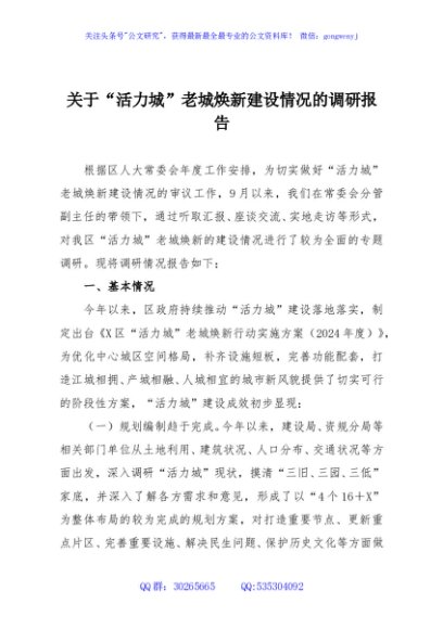 / 关于“活力城”老城焕新建设情况的调研报告