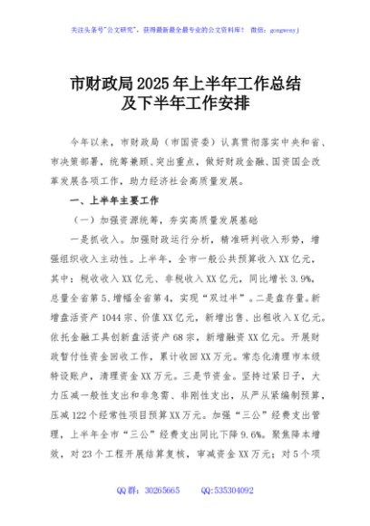 / 市财政局2025年上半年工作总结及下半年工作安排