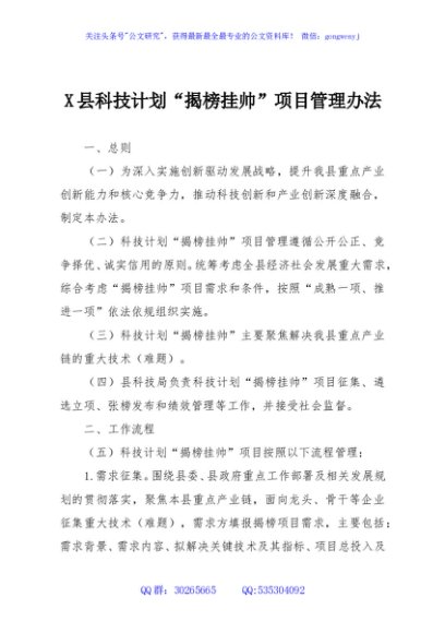 / X县科技计划“揭榜挂帅”项目管理办法