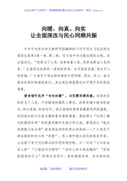 / 向暖、向真、向实让全面深改与民心同频共振