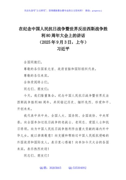 在纪念中国人民抗日战争暨世界反法西斯战争胜利80周年大会上的讲话-习近平