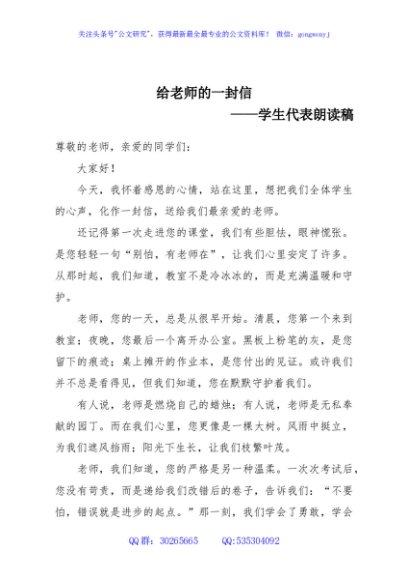 / 给老师的一封信-学生代表朗读稿