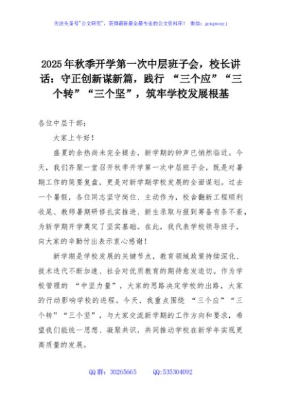 / 2025年秋季开学第一次中层班子会,校长讲话:守正创新谋新篇,践行 “三个应”“三个转”“三个坚”,筑牢学校发展根基