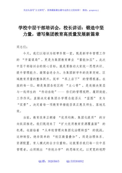 学校中层干部培训会,校长讲话:锻造中坚力量,谱写集团教育高质量发展新篇章