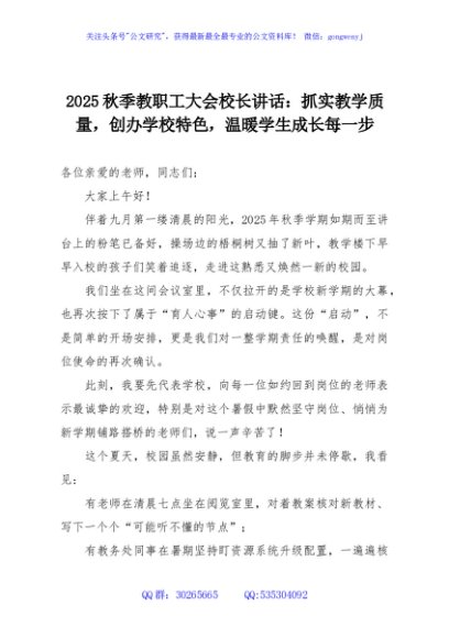 / 2025秋季教职工大会校长讲话:抓实教学质量,创办学校特色,温暖学生成长每一步