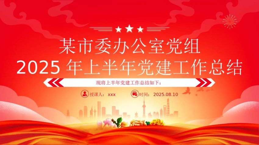 / 某市委办公室党组2025年上半年党建工作总结PPT