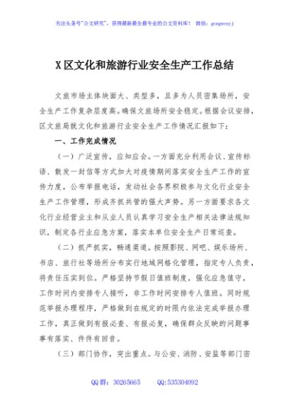 / X区文化和旅游行业安全生产工作总结