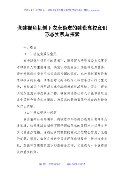 / 党建视角机制下安全稳定的建设高校意识形态实践与探索