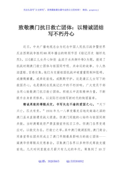 致敬澳门抗日救亡团体:以精诚团结写不朽丹心