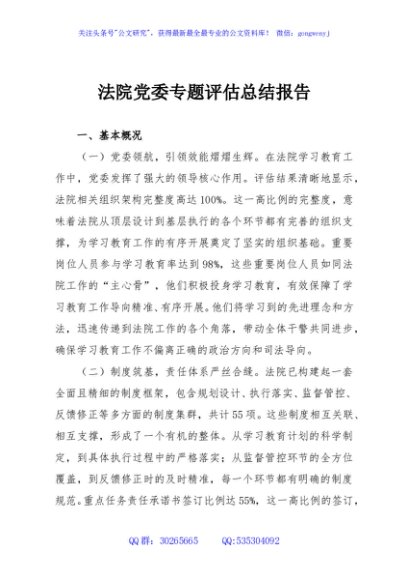 / 法院党委专题评估总结报告