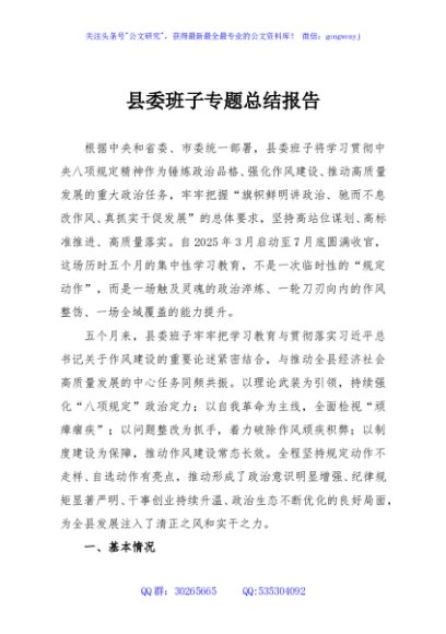 / 县委班子专题总结报告