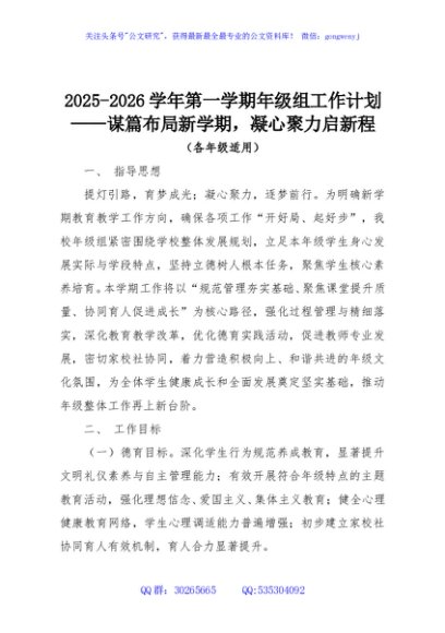 2025-2026学年第一学期年级组工作计划——谋篇布局新学期,凝心聚力启新程