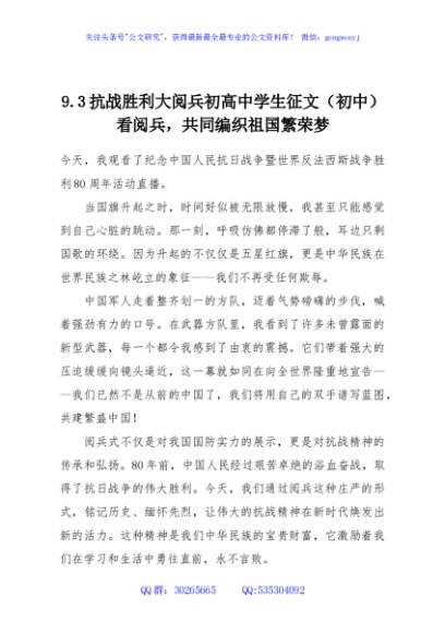 / 9.3抗战胜利大阅兵初高中学生征文(初中)看阅兵共同编织祖国繁荣梦