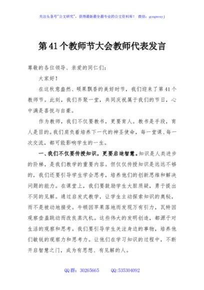 / 第41个教师节大会教师代表发言