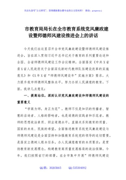 / 市教育局局长在全市教育系统党风廉政建设暨师德师风建设推进会上的讲话