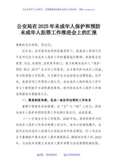 / 公安局在2025年未成年人保护和预防未成年人犯罪工作推进会上的汇报