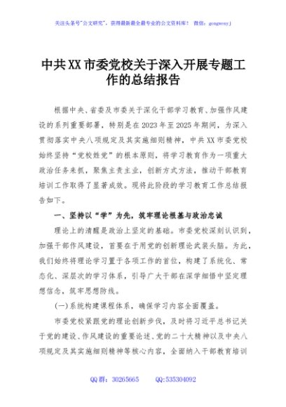 / 中共XX市委党校关于深入开展专题工作的总结报告