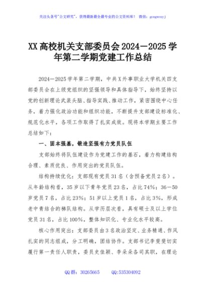 / XX高校机关支部委员会2024-2025学年第二学期党建工作总结
