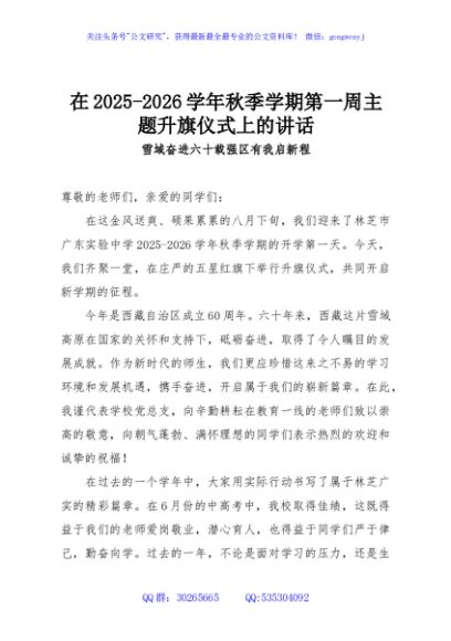 / 在2025-2026学年秋季学期第一周主题升旗仪式上的讲话