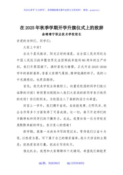 / 在2025年秋季学期开学升旗仪式上的致辞